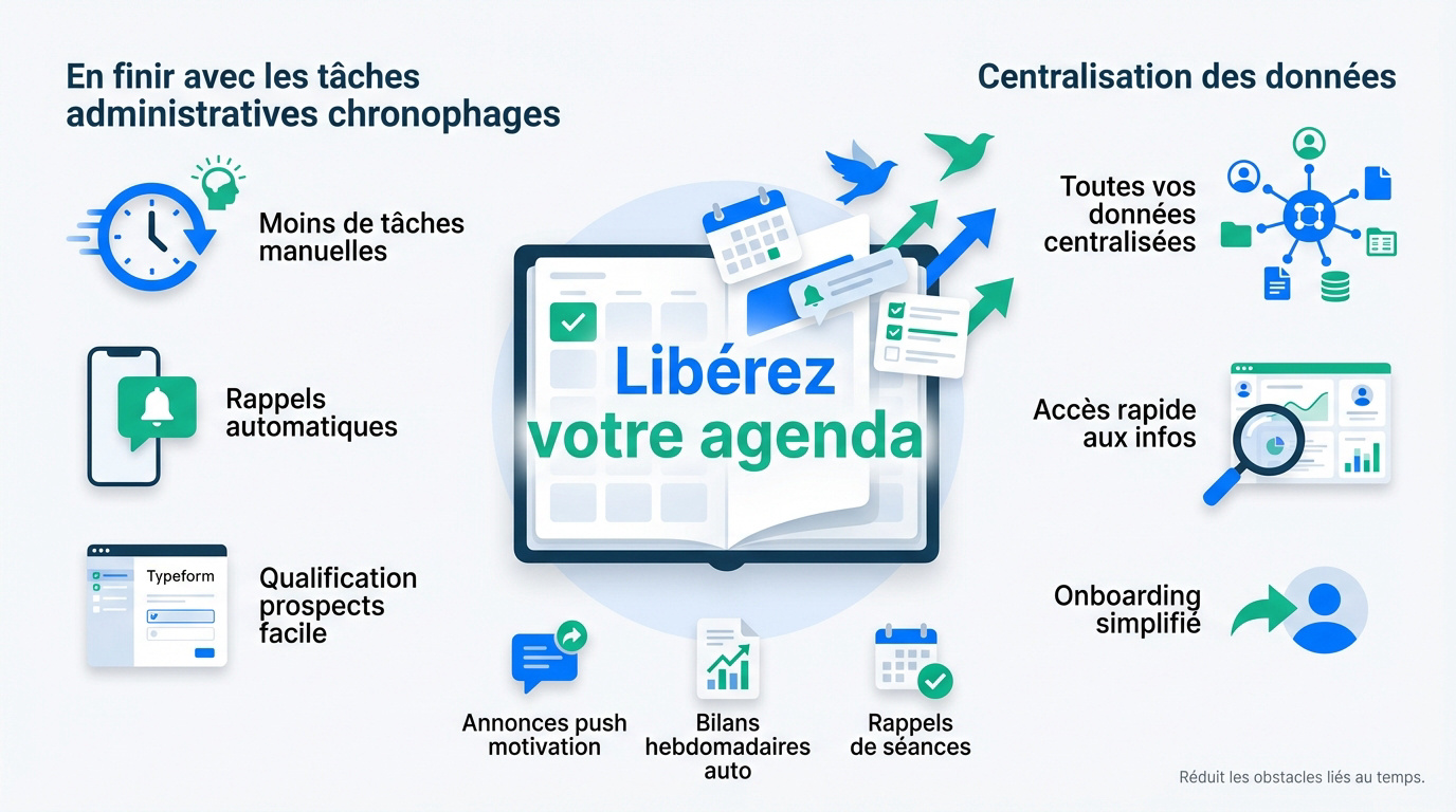 Après avoir passé des années à jongler entre les tableurs et les emails, j'ai compris que le vrai luxe d'un coach, c'est le temps, et c'est exactement là que l'automatisation change la donne.