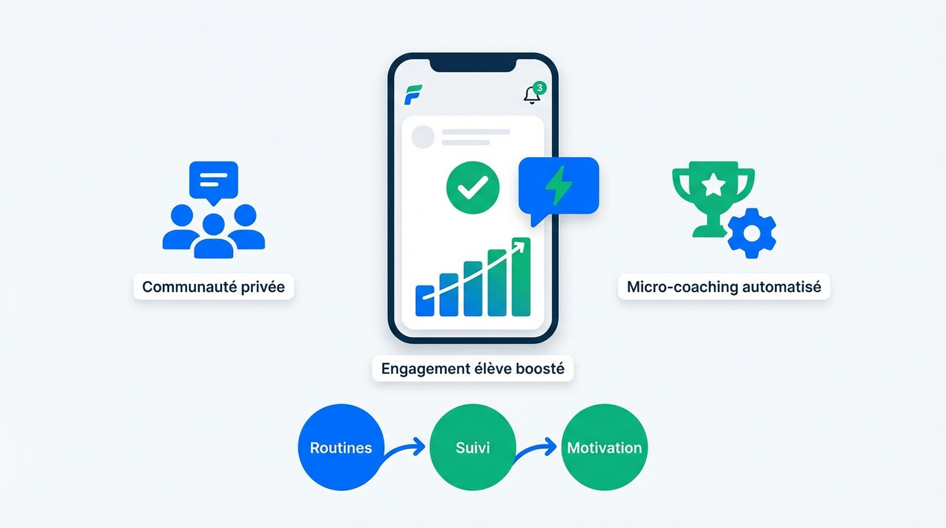 Absolument ! L'automatisation transforme l'apprentissage en une expérience interactive et stimulante. En instaurant des rituels quotidiens, comme des notifications de motivation ou des routines à cocher, vous ancrez des habitudes durables chez vos élèves. Ce système de "micro-coaching" maintient une présence constante qui rassure et encourage l'élève à chaque étape de son parcours. 📱 De plus, l'utilisation de plateformes dédiées permet de créer une dynamique de groupe saine et sécurisée. Vous pouvez animer votre communauté, partager des succès et favoriser l'entraide sans subir les distractions des réseaux sociaux classiques. Vos élèves restent focalisés sur leurs objectifs, portés par une interface professionnelle à votre image. 🤝