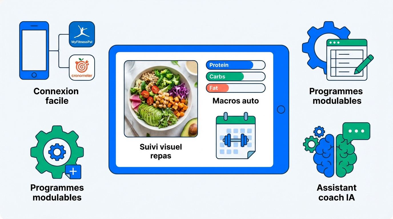 Contrairement aux idées reçues, la technologie humanise votre coaching ! Grâce à l'IA et aux outils d'analyse, vous bénéficiez d'une vision ultra-précise des besoins de chaque individu. Vous pouvez recommander des contenus spécifiques et ajuster les programmes en temps réel en fonction des métriques de fitness ou des progrès constatés. C'est du sur-mesure à grande échelle. 🎯 Dans le domaine du fitness, par exemple, la synchronisation avec des outils comme MyFitnessPal permet un suivi nutritionnel en pilote automatique. Vous visualisez les données sans effort, ce qui vous permet d'intervenir au bon moment avec le bon conseil. Vos élèves se sentent ainsi écoutés et soutenus personnellement, sans que vous n'ayez à y passer vos nuits. 🥗