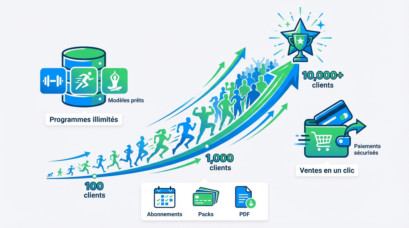 Vendre vos packs d'entraînements devient un jeu d'enfant. Le logiciel transforme votre savoir-faire en produits numériques. La commercialisation est fluide, directe et surtout ultra professionnelle.