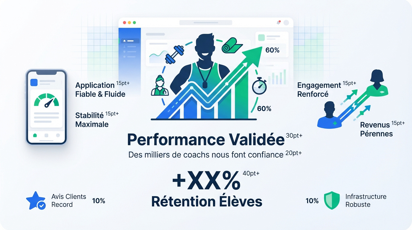 Des milliers de coachs utilisent déjà cette infrastructure robuste. La fiabilité technique assure un service sans interruption. Les avis clients soulignent une satisfaction record. C'est une base solide pour votre business.
