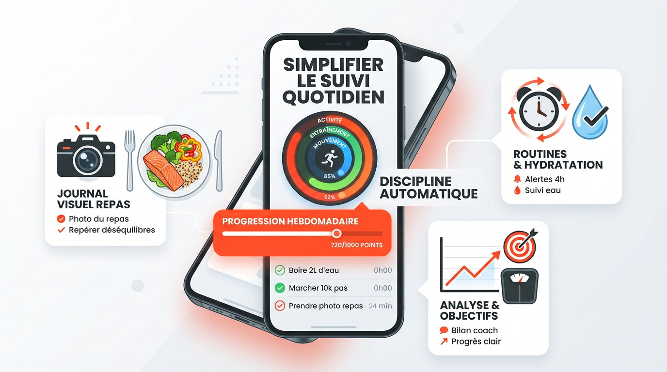 Ce qu'il faut retenir : une checklist nutritionnelle transforme l'alimentation intuitive en une stratégie de précision pour booster vos performances. Ce pilotage rigoureux des macros et de l'hydratation sécurise votre énergie tout en optimisant la récupération. 🚀 Notez qu'une perte de 2 % de poids en eau suffit à dégrader vos capacités physiques. Améliorez vos résultats avec les types de suivis sportifs.