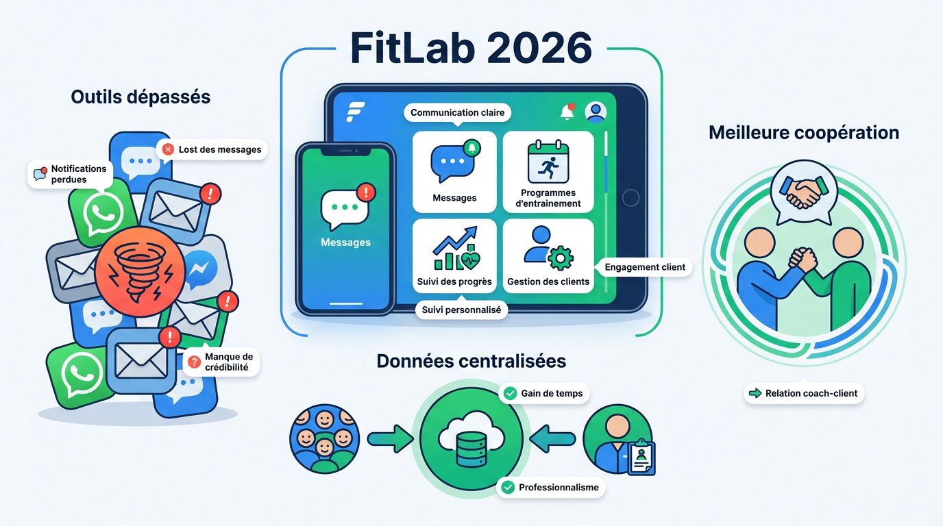 Pourquoi choisir FitLab plutôt que WhatsApp ou les emails pour mon coaching ?