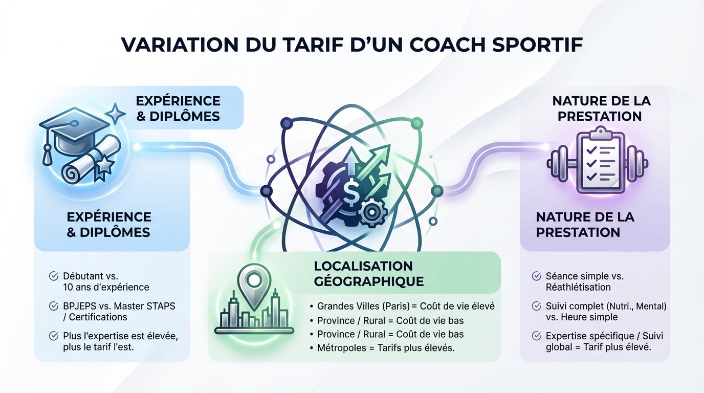 | Préparation physique (sport spécifique) | 60€ - 90€+ | Expertise pointue, planification de la performance, tests physiques (type Test Gacon). |