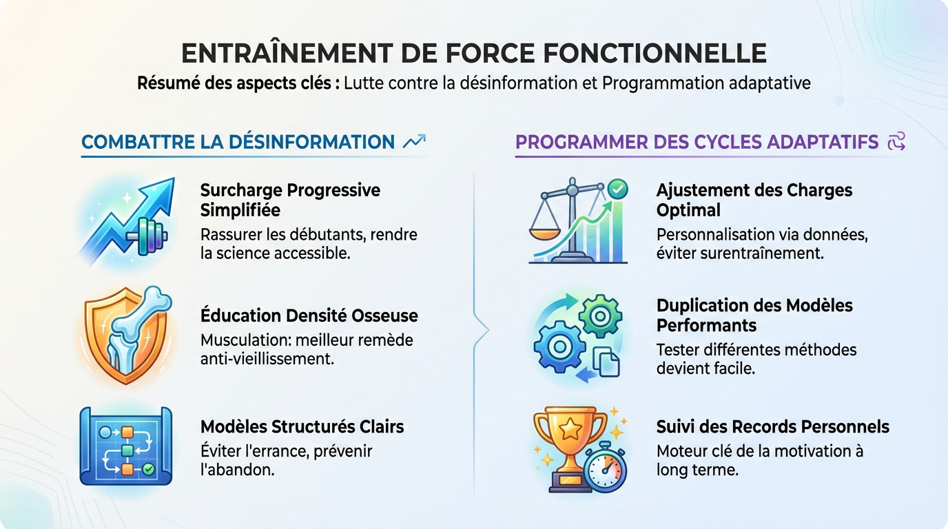 Simplifiez radicalement la surcharge progressive pour vos athlètes. Il faut rassurer les débutants, souvent perdus face aux mythes toxiques du fitness. La science doit être accessible pour contrer la confusion ambiante.