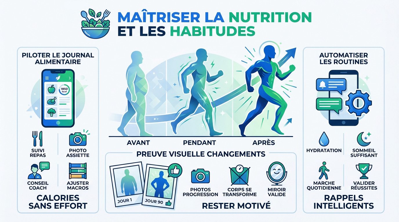 Utilisez la photo pour une transparence totale. Le coach observe l'assiette réelle et peut corriger les portions ou les choix. C'est un gage de réussite pour votre suivi nutritionnel.
