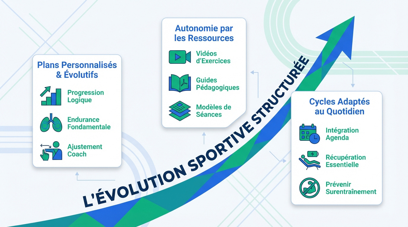 Votre coach bâtit des séances logiques. La difficulté grimpe étape par étape pour stimuler vos fibres. Mais ce rythme évite de griller vos cartouches trop vite.